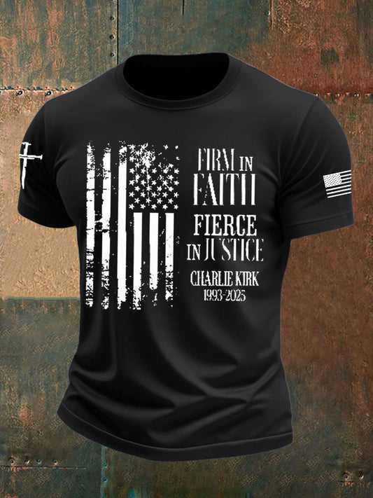 Men's Firm in Faith Fierce in Justice Shirt Political Gift Charlie Kirk 1993–2025 imitation cotton short-sleeved T-shirt