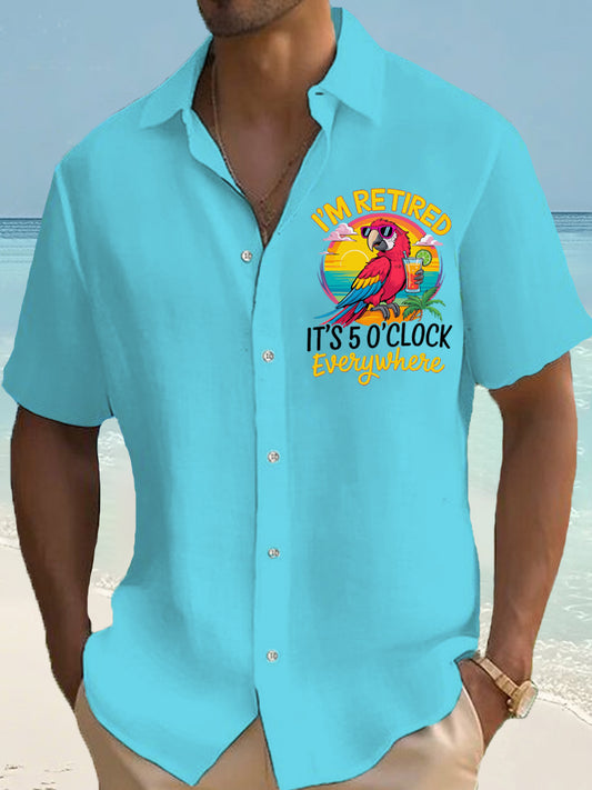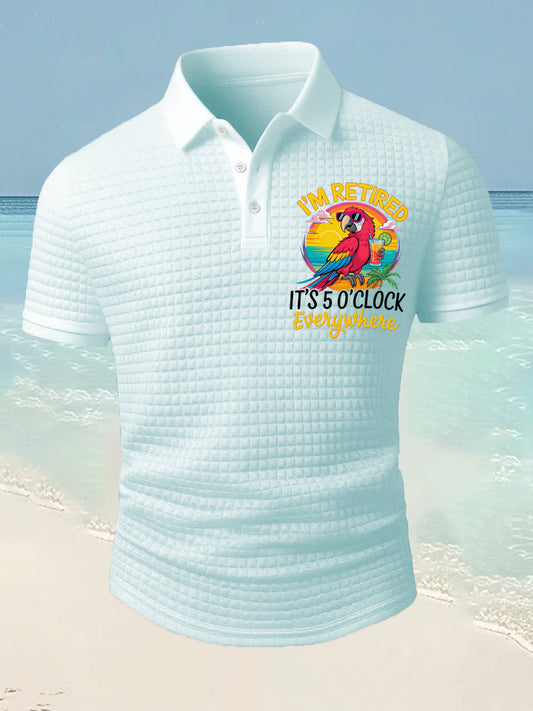 Men's I'm Retired It's 5 O'clock Everywhere Parrot Print Casual Waffle Short-Sleeve Shirt