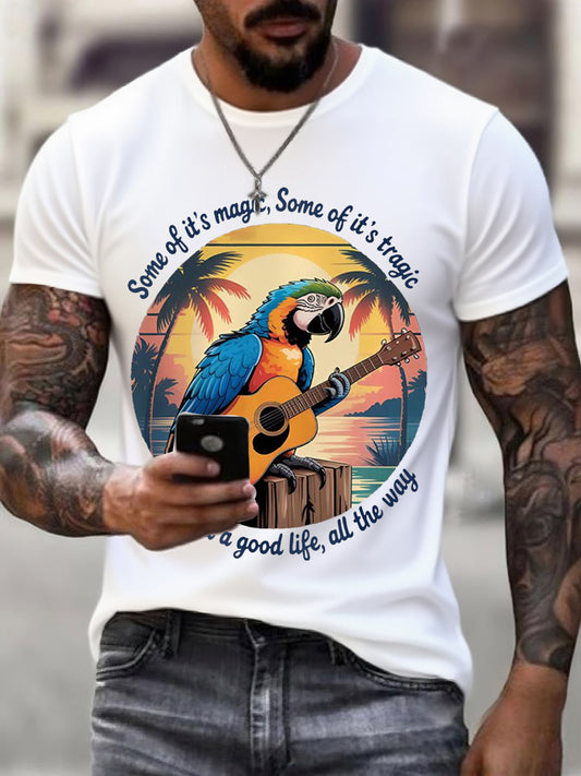 Men's Some Of It’s Magic Some of It’s Tragic, But I Had A Good Life,All The Way Parrot Guitar Casual Tee
