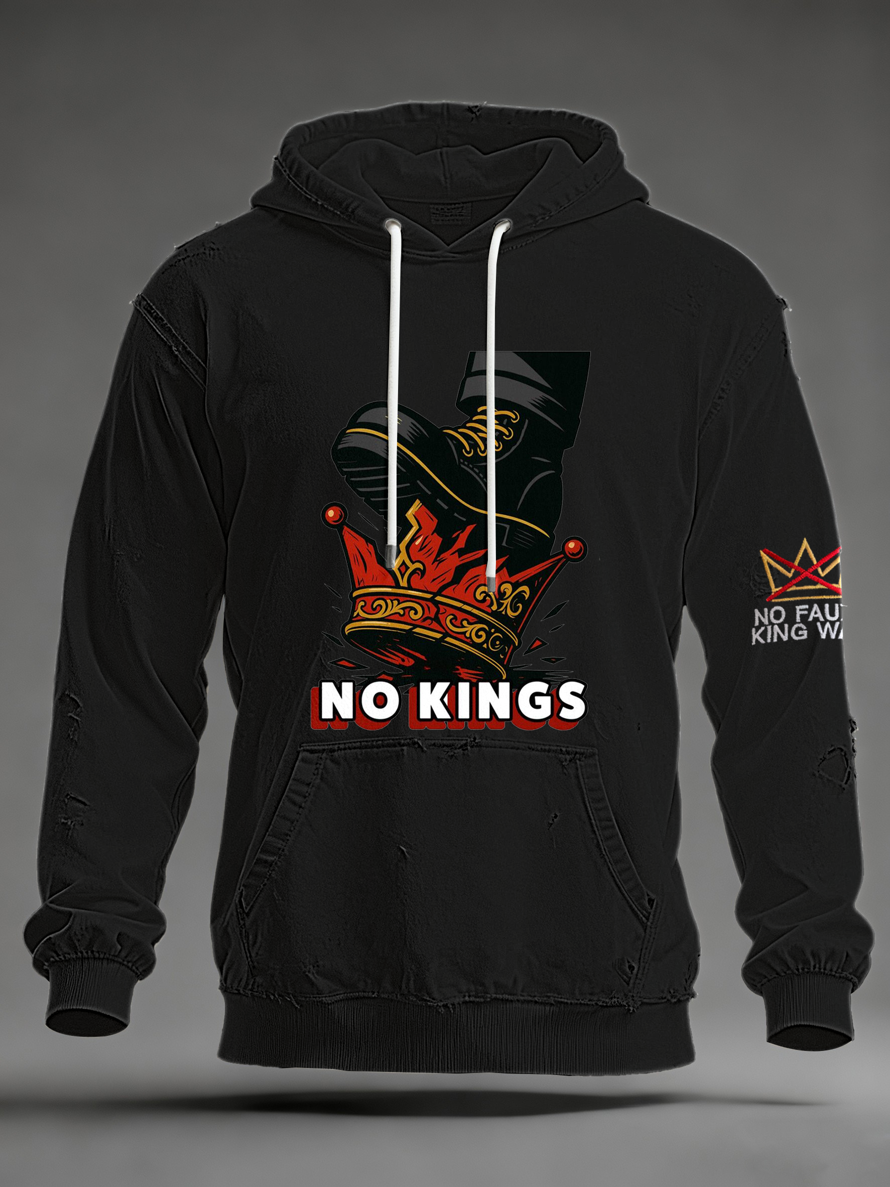 Men's No Kings Oversized Drop-Shoulder Hoodie with Pockets