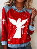 Retro Christmas Faith Abstract Print Casua Lapel Top