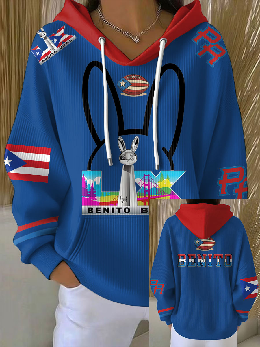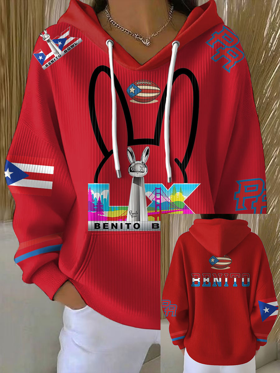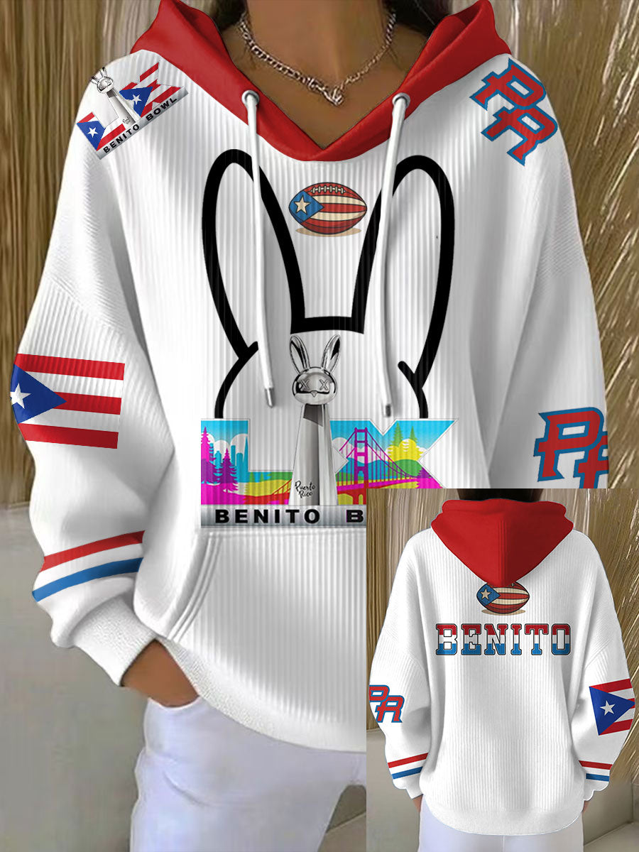 Women's Bunny Football Music Lover Printed Hoodie