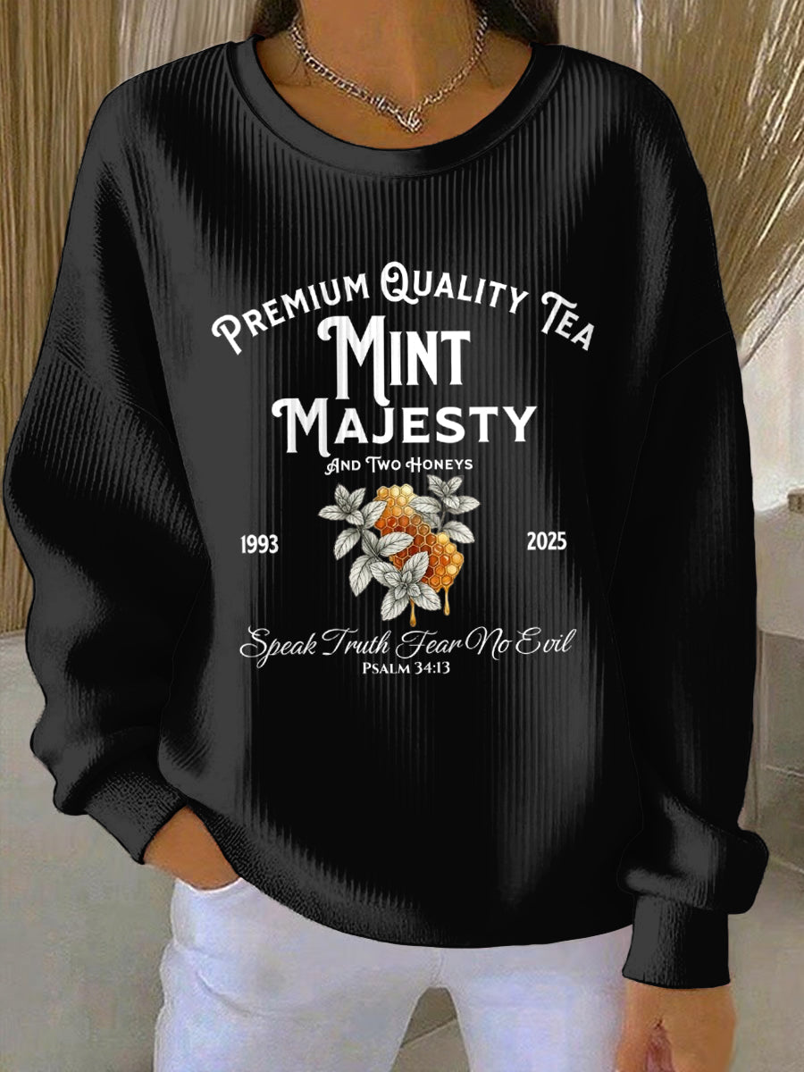 Women's Mint Tea With Two Honey Charlie Kirk Print Ribbed Round-Neck Sweatshirt