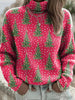 Women's Pink Christmas Tree Turtleneck Sweater